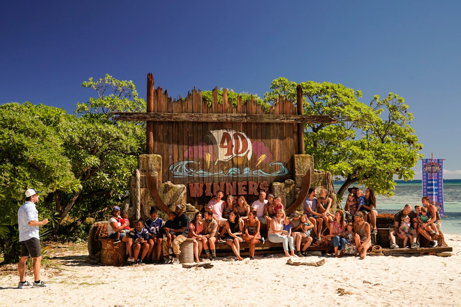 In Winners at War, not only one, but multiple loved ones appeared on Day 24. Rather than having a challenge, all of the castaways — including those inhabiting the Edge of Extinction — were able to be with their loved ones at their respective camps for the whole day. For the castaways in the game, the loved ones were Kim Spradlin-Wolfe's husband Bryan and their three kids, Ben Driebergen's wife Kelly and their two kids, Sophie Clarke's fiancé Bobby, Sarah Lacina's partner Wyatt and their son, Denise Stapley's husband Brad and their daughter, Nick Wilson's fiancée Grisel, Tony Vlachos's wife Marissa and their two kids, Michele Fitzgerald's sister Kim, Tyson Apostol's wife and former castaway Rachel Foulger and one of their daughters, and Jeremy Collins's wife and former castaway Val Collins and their four kids. Jeff revealed that there was no challenge at all, and let everyone go back to camp with their loved ones. On the Edge of Extinction, the loved ones were Natalie Anderson's twin sister and former castaway Nadiya Anderson and her daughter, Amber Mariano and Rob Mariano's four daughters and Rob's parents, Danni Boatwright's mother and one of her sons, Ethan Zohn's wife, Parvati Shallow's husband and former castaway John Fincher and their daughter, Yul Kwon's wife and two daughters, Wendell Holland's father, and Adam Klein's father. Sandra Diaz-Twine, who left the Edge before the loved ones arrived, confirmed that her family also visited her at Ponderosa.[4]