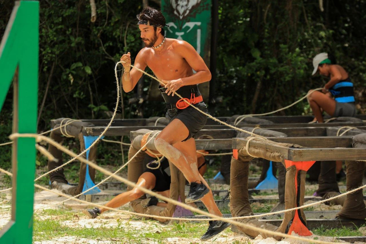 Stage 1: The castaways will be attached to a rope that is threaded through a series of obstacles, which they will need to climb over and crawl under to reach the finish post. The first four people to finish move on to the second stage.